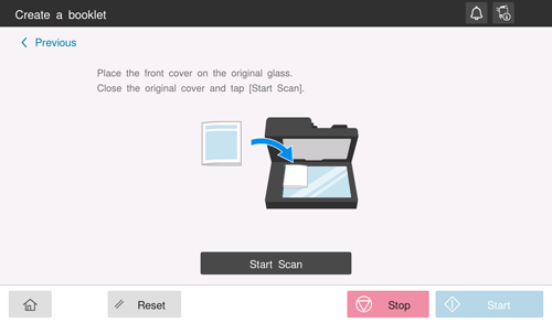 The [Create a booklet] position varies depending on the customization status of the home screen. By default, access from [Useful Apps] on the home screen. For details on [Useful Apps], refer to Accessing all the function keys.