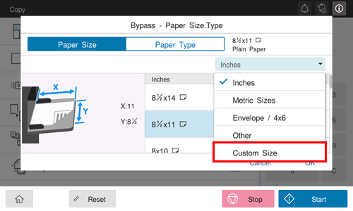 [Custom Size]: Directly specify the length and width of paper. For details, refer to Specifying the custom size.