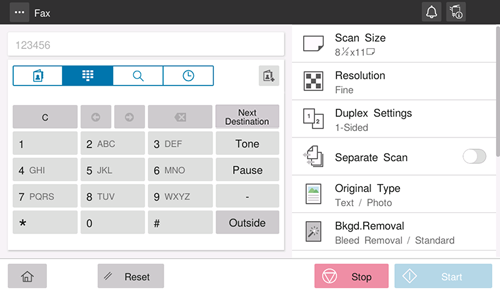 ) displays a list of destinations registered on this machine. Switch the display using an index, and specify the target destination. For details, refer to Using Address Book.