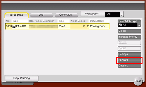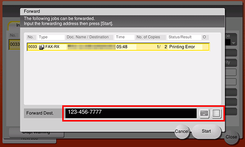If it is not possible to promptly deal with the problem, the saved fax can be forwarded to another destination.
