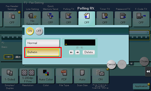 Polling RX (Bulletin) is a function that receives a file for polling saved in the Bulletin Board User Box in a transmitting machine by sending a request from this machine.