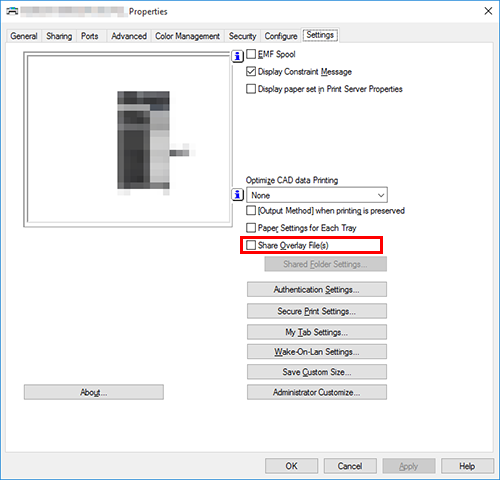 [Obtain Device Information] | If your computer can communicate with this machine, your computer obtains and displays the latest information on the overlay images registered in this machine. | |