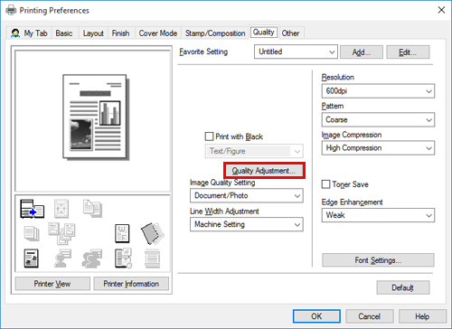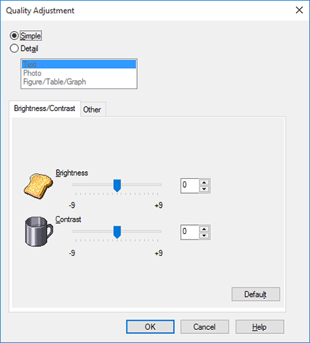 You can adjust the overall image quality of the original, and you can also adjust in detail the image quality of each element of the original, such as text and photos. When you are using the PCL driver, you can adjust the brightness and contrast.