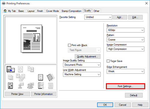 [Use Printer Fonts] | Select this check box to replace TrueType fonts with printer fonts during printing. Use of printer fonts increases the printing speed. In normal printing operations, we recommend that you select this check box. |