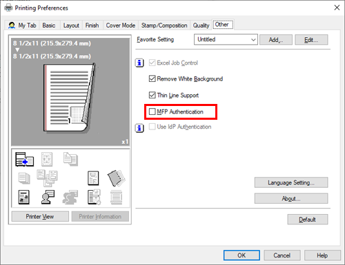 If you always use the same account name and password, registering them in advance eliminates the need to enter them each time. For details, refer to Changing the default print settings.