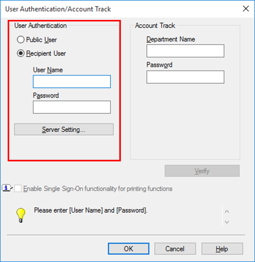 If your computer can communicate with this machine, clicking [Verify] executes authentication based on the authentication information that has been input. You can check the authentication information for errors before starting printing.