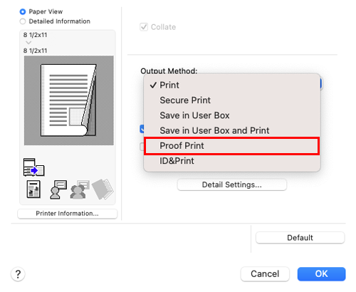 Only one copy is printed. Then, proceed to Printing a Proof Print job on this machine.