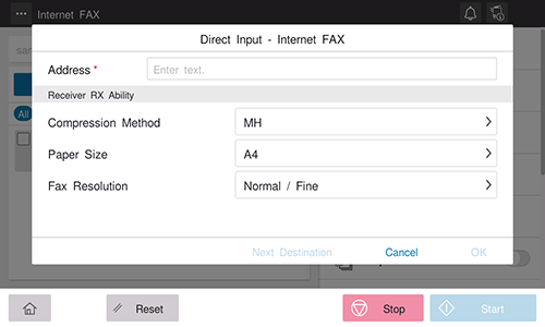 Settings of [Direct Input - Internet FAX]