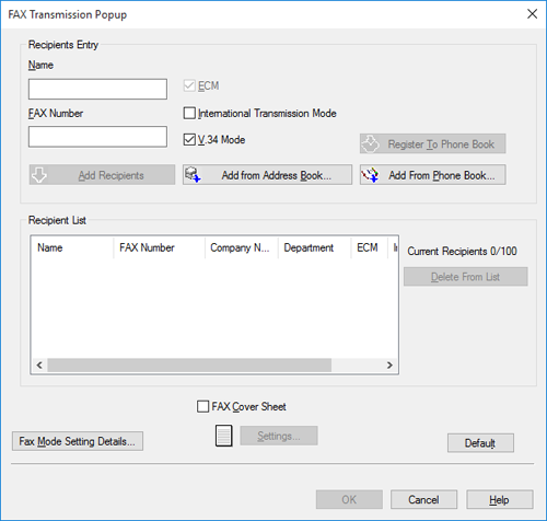 Home > PC-FAX > PC-Fax TX Operations > The [FAX Transmission Popup] Screen > How to Display the [FAX Transmission Popup] Screen