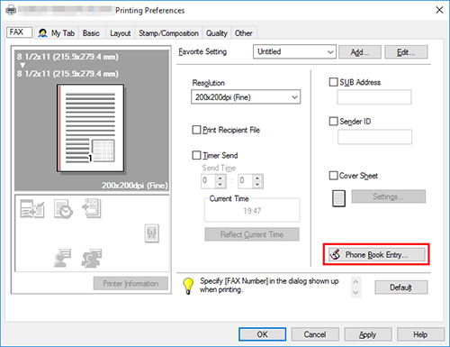 If you have registered the frequently calling recipients in the Phone Book, you can quickly call the recipient when sending a fax. Use the [FAX] tab of the fax driver to add recipients to a phone book.
