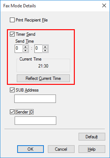 When you click [Reflect Current Time], the current clock time of the PC is reflected on the [Send Time].