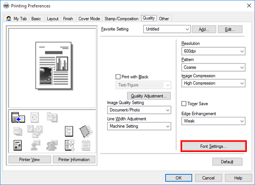 Click [Font Settings...] in the [Quality] tab of the printer driver.