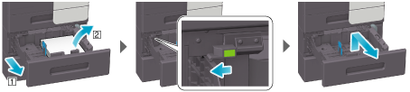 When removing pieces of paper in the paper tray (Tray 2/3/4)