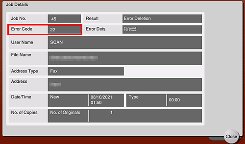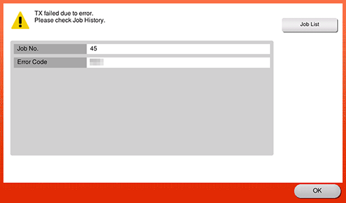 The error code can also be checked on the [Job Details] screen. To display the [Job Details] screen, tap [Job List], select the job that caused the error from [Log], and tap [Details..].