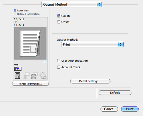 [Output Method] | Select the method to use to print the original from this machine. | |