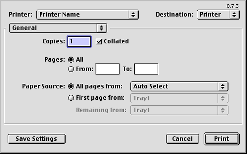 [Paper Source:] | Select the paper tray and paper type used for printing. |