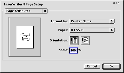 In [Page Attributes] in the [Page Setup] (or [Paper Setup]) window, you can configure basic settings about paper.