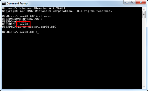 For domain users, type in "set user", and check the user name.
