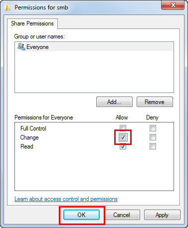 Select the check box to permit [Change], then click [OK].