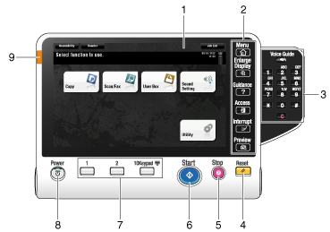 Tap this key to change the display of the Touch Panel to Enlarge Display mode. The [Enlarge Display] lights up in blue color during Enlarge Display is being displayed.