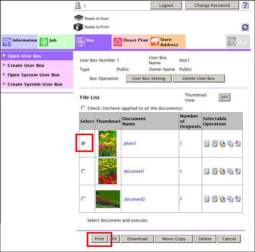Using Web Connection allows you to download files in the Public User Box to a computer. For details, refer to Here.
