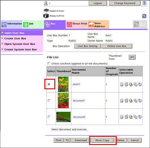 Select the check box of file you wish to move or copy, and click [Move/Copy].
