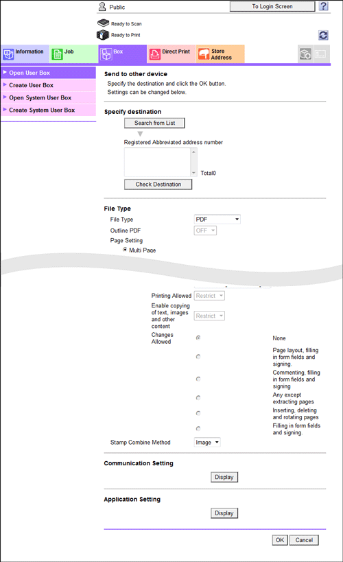 If a User Box administrator is specified, its ID and password are required for authentication to reference files in the Public User Box, which is protected by the password.