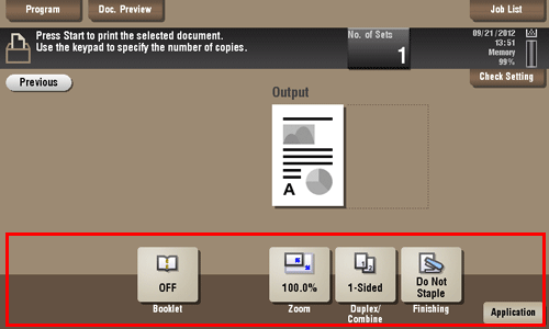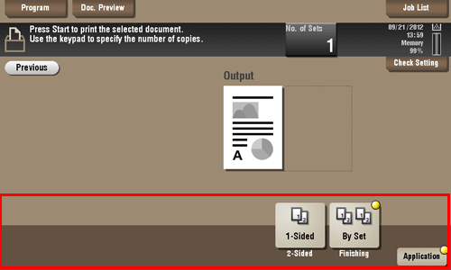 [Basic Setting] | You can set a number of copies, 2-sided Print, and Finishing if necessary. |
