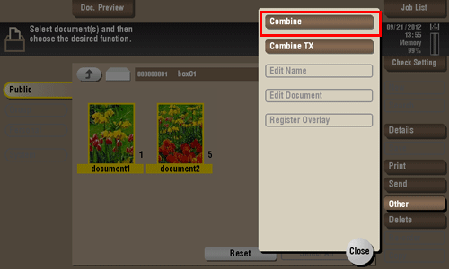 When printing multiple files at the same time, you can combine those files and handle them as a single job. This is called the Combine printing.