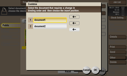 Change the order of printing files (Combine sequence) if necessary, then tap [OK].