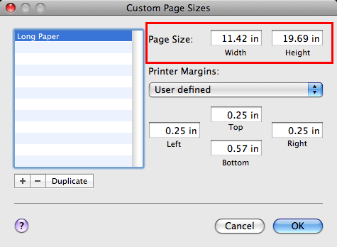 This saves the custom paper size, which can be selected from the [Paper Size:] drop-down list in [Page Attributes].
