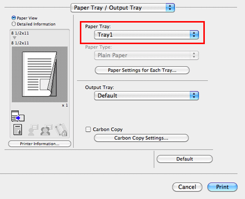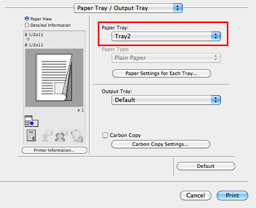 In [Paper Tray:] in [Paper Tray / Output Tray], select the paper tray for printing.