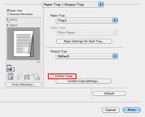 [Carbon Copy Tray] | Select the paper tray for carbon copies. Select the check boxes for all paper trays to be used. |