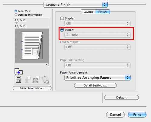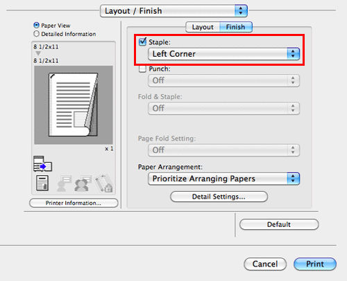 In [Print Type:] in [Layout / Finish], select [2-Sided]. [2-Sided] is specified by default.