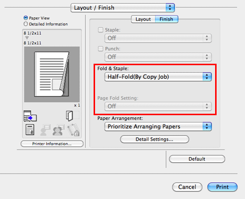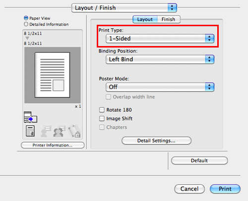 In [Print Type:] in [Layout / Finish], select [1-Sided].