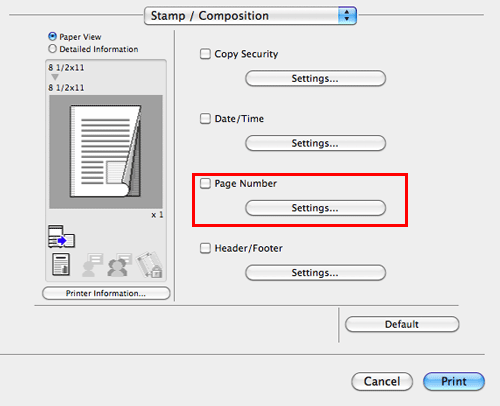In Mac OS X 10.5/10.6/10.7/10.8/10.9, you can configure the same setting in [Paper Size:] in the [Print] window.