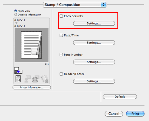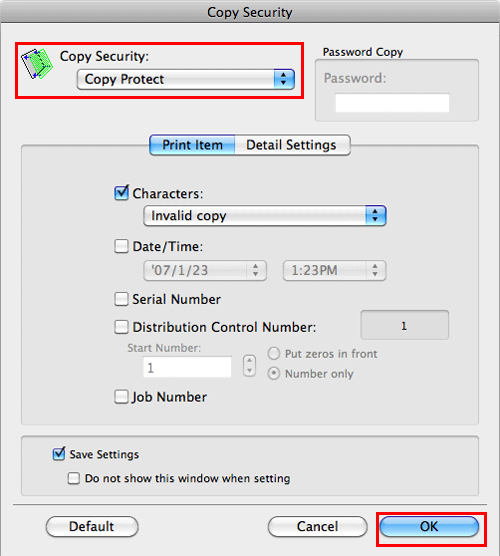 In [Stamp / Composition], select the [Copy Security] check box, then click [Settings...].