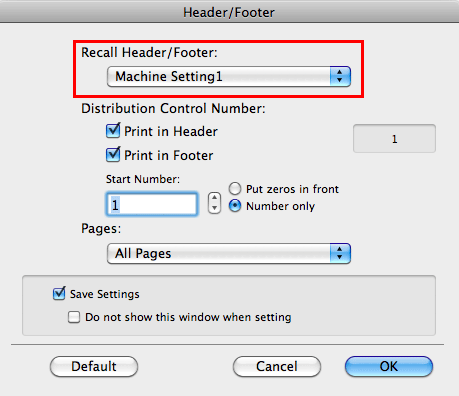 When the [Save Settings] check box is selected, the settings are saved. When the [Do not show this window when setting] check box is selected, this dialog box is not displayed next time. If you always use the same file name and box number, selecting this check box eliminates the need for entering them each time.