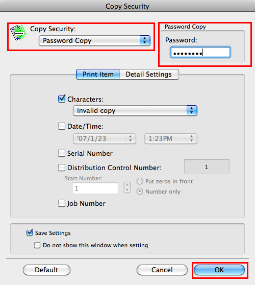 To use [Password Copy], you need to install the optional Security Kit and enable the Password Copy function of this machine. For details on how to enable the Password Copy function, refer to Here.
