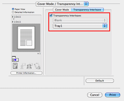In [Cover Mode / Transparency Interleave] or [Cover Mode] (Mac OS X 10.7 or later), select the [Transparency Interleave:] check box.