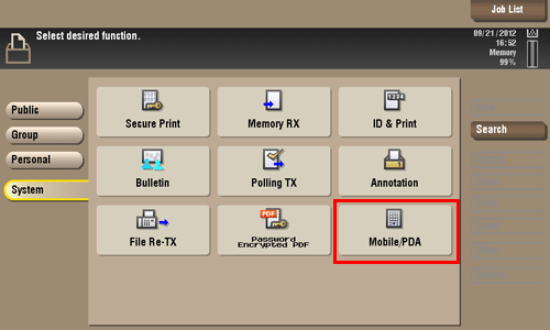 Tap [System] - [Mobile/PDA].