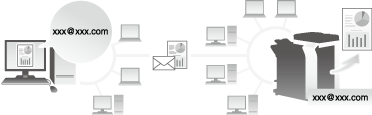 If you send an E-mail to the E-mail address of the machine, you can print a PDF, Compact PDF, JPEG, TIFF, XPS, Compact XPS, OOXML (.docx/.xlsx/.pptx), or PPML (.ppml/.vdx/.zip) file on the computer using the machine without using the printer driver.