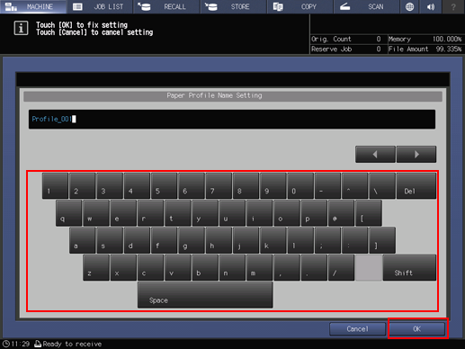 Enter the paper profile name and press OK.