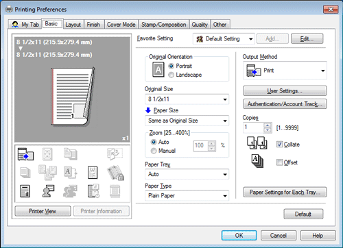 1. On the [Basic] tab, set up the print function which uses the password for [Secure Print], [Save in User Box], [User Authentication] and others.