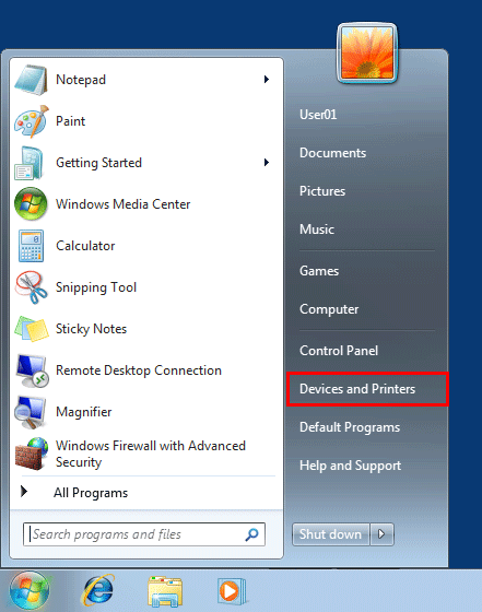 • In Windows 7/Server 2008 R2, click the Start menu, then click [Devices and Printers].
