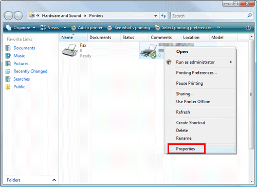 • In Windows Server 2008, right-click the icon of the installed printer, then click [Properties].