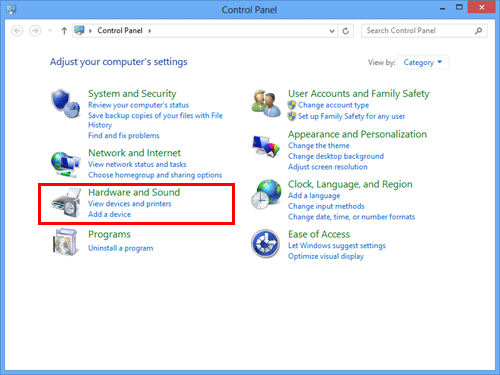 If [Devices and Printers] is not displayed, click [Control Panel] - [Hardware and Sound], then click [View devices and printers].