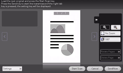 After all originals have been scanned, tap [SendNow] or press the Start key.