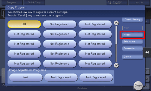 When you register a copy program, you can recall the combination of various copy settings from the main screen with simple action.