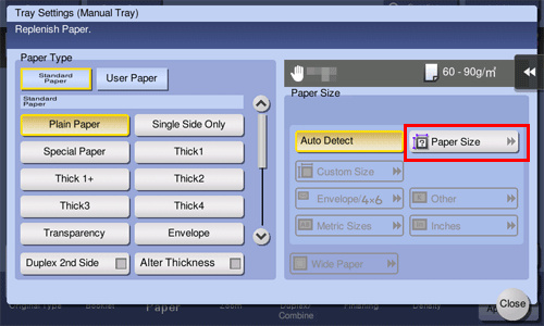 This machine selects paper automatically based on the size of the detected original when making a copy. If necessary, you can specify a paper type or size different from that of the original to make a copy.